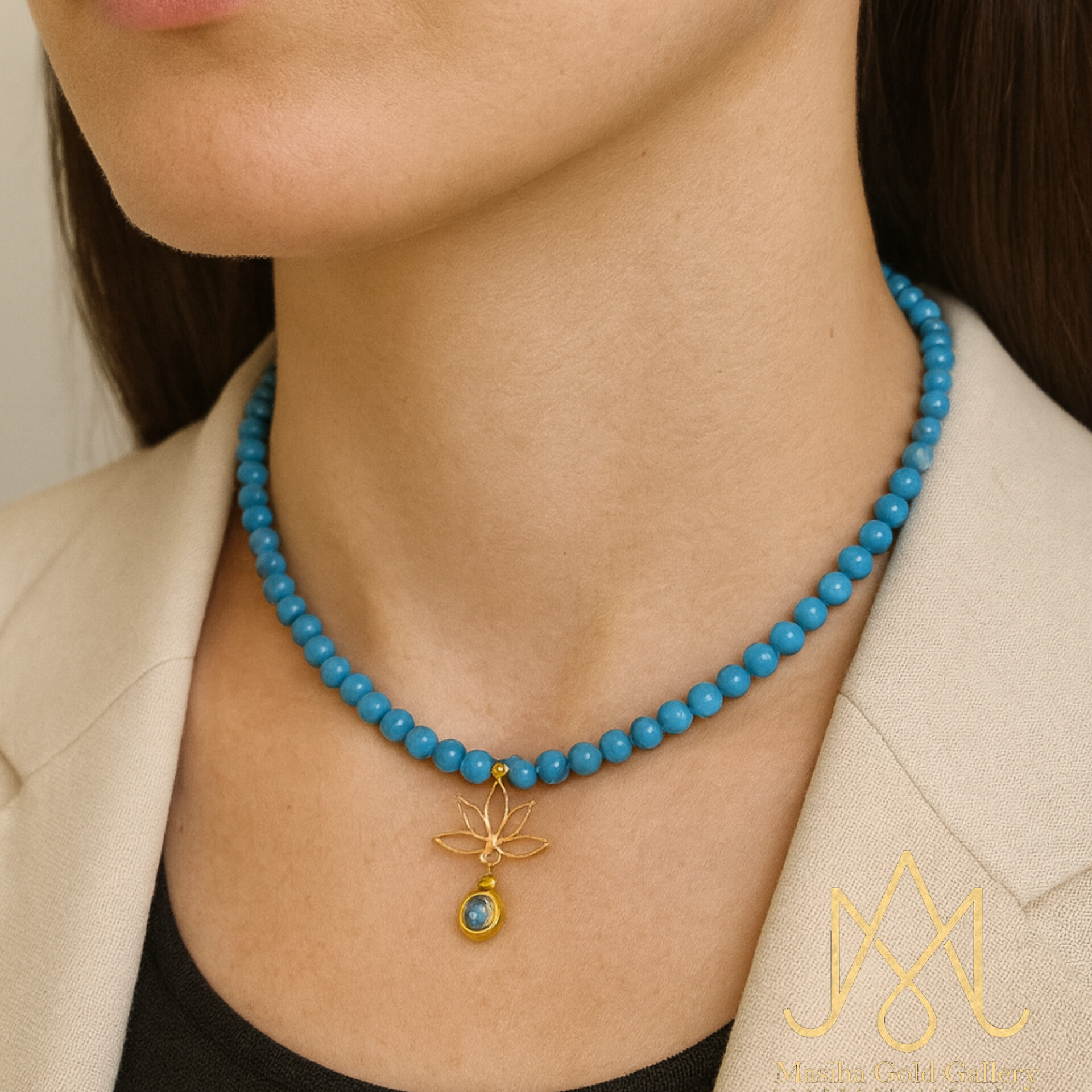 مونتاژ شده با فیروزه .مدال و قفل و حلقه طلا هستند