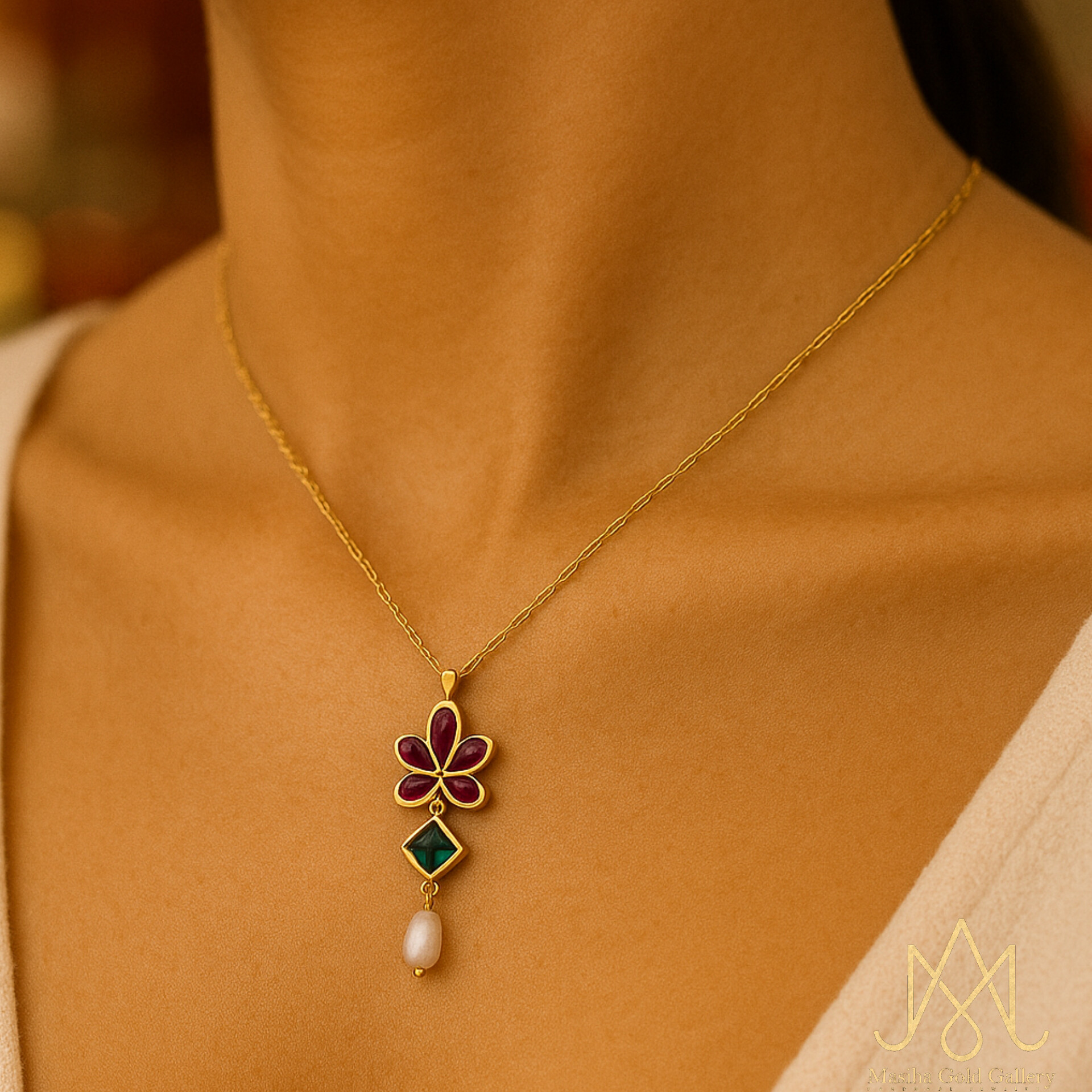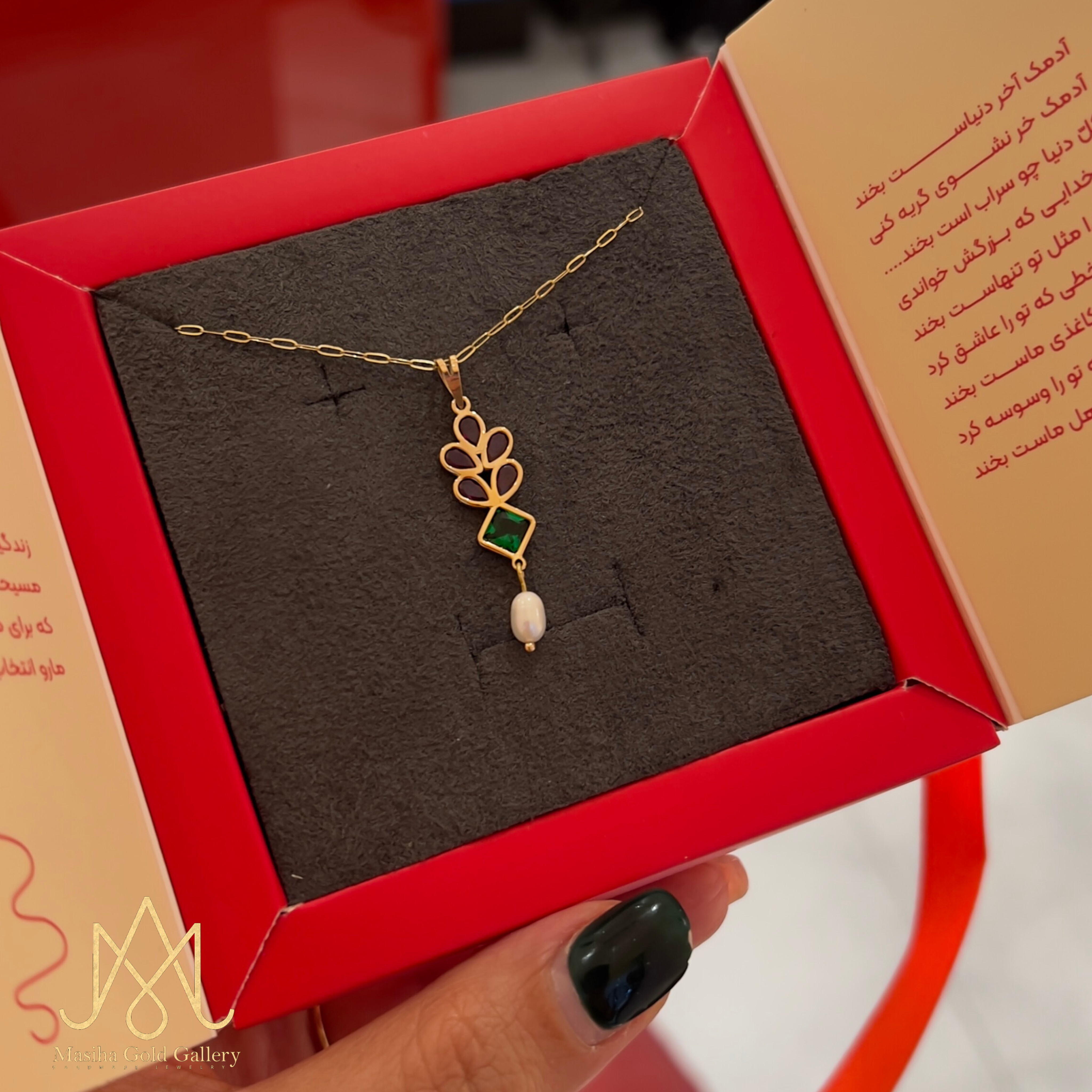مدال خوشه پرنس مربع سبز و مروارید